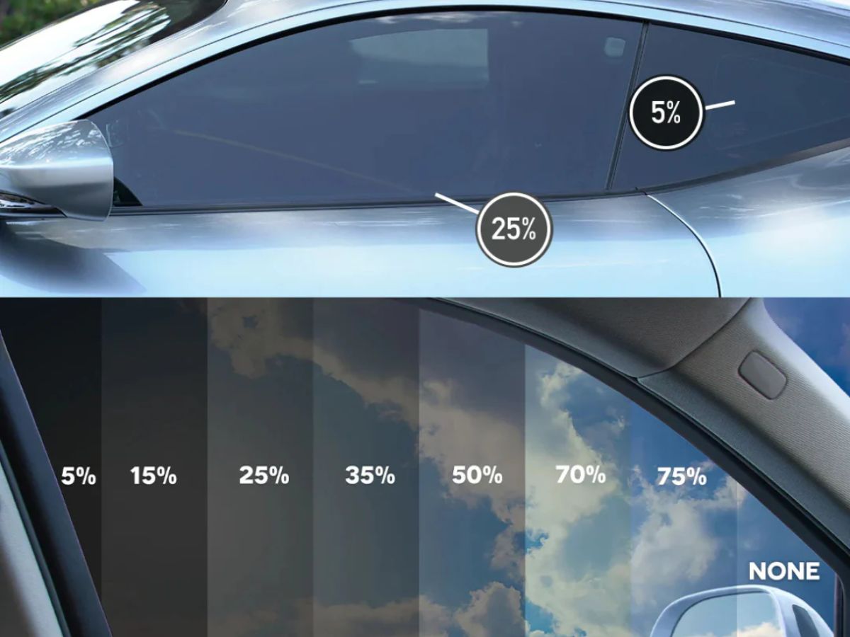 We offer window tint film in different shade percentages including 5, 18, 20, 25, 35, 55, 70 depending on the type of film selected (carbon, ceramic, advanced ceramic). We can also offer other shade percentages upon request.